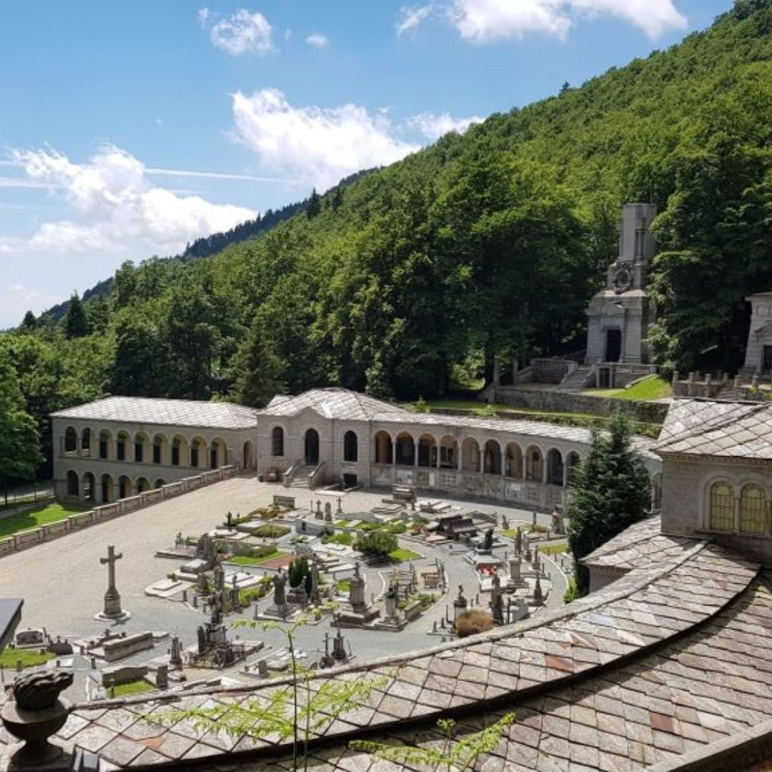 La visita guidata porta alla scoperta del Santuario di Oropa, il grande complesso mariano che domina le Alpi Biellesi a 1.159 metri di quota, tra architettura barocca, secoli di devozione e uno dei cimiteri monumentali più suggestivi del Piemonte.